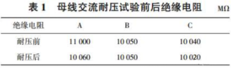 從耐壓試驗(yàn)過(guò)程和表1絕緣電阻數(shù)據(jù)來(lái)看,該35kV 充氣柜母線(xiàn)耐壓試驗(yàn)合格。