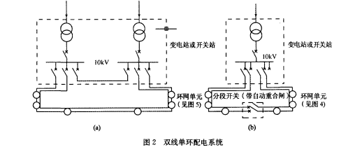 20061月正式實施的江蘇省地方標準《江蘇省工程建設標準》DGJ31/J14-2005中規定,配所--般應優先采用環網單元(環網單元是指環式配電系統中配電所的系統接線)。可見環式配電系統是10kV配電系統的推薦系統和發展方向。