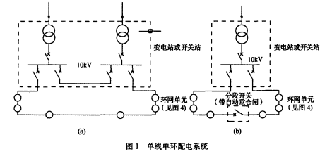 長期以來,我國10kV配電系統,通常采用放射式或樹干式配電系統。隨著我國建設的發展,用電負荷量的密度迅速增加,上述配電系統已很難適應當前和以后發展的需要。由于環式配電系統能使配電線路簡化,減少線路走廊,系統改造和發展靈活,管理方便,以及所使用的環網開關柜(簡稱環網柜)具有體積小、性能優越、可靠性高、接線簡化、操作容易方便、造價低的優點,越來越多地被人們所認識。
